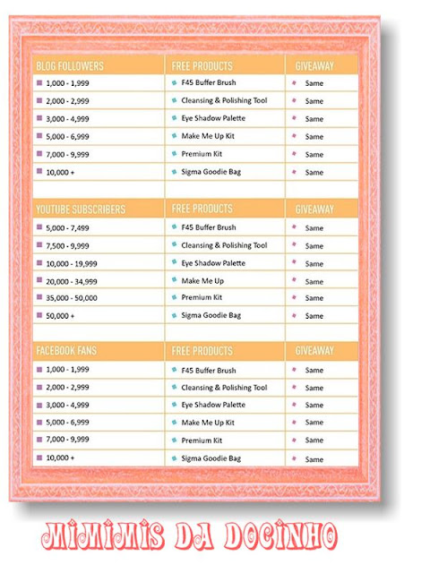 Agora para conseguir produtos da Sigma Beauty para sorteio ficou mais difícil. Somente serão aceitos blogs com quantidade de seguidores superior a mil! Pois é, também fiquei triste, haha.